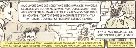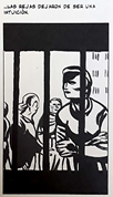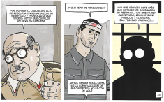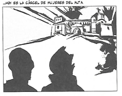 El tema de la cárcel es mucho más arriesgado, porque se relaciona con la violencia directa a civiles, supone una responsabilidad institucional en los acontecimientos, designa un campo. A pesar de su importancia, el cómic se niega a abordar el tema casi hasta el final de los años 90, porque su evocación en las descripciones de la guerra iría en contra del imperativo de reconciliación nacional. La cárcel franquista comienza a ser un tema solamente cuando los personajes franquistas adquieren consistencia, o sea, a partir de los años 200082.