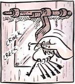 También se sugiere el encierro carcelario en las viñetas gracias a sus símbolos sensoriales: el candado y sus onomatopeyas (fig. 13), las rejas de la celda que se convierten, en un efecto visual, en la sombra perpetua de la reclusa en libertad89, el olor "a sudor y excrementos" y las cadenas que hieren las manos de las esposadas, en particular durante los traslados90, las baldosas en blanco y negro que delimitan el escaso espacio vital de los detenidos91. Las viñetas reflejan tanto el hacinamiento de estas cárceles improvisadas, en las que pueden dormir cinco presos por celda individual92, como la profunda soledad del que aguarda sin dormir en su colchón93 o de la que se queda aislada por un castigo ejemplar, junto a una amiga muerta, en el gallinero94. En medio de esta prohibición totalitaria, de este silencio impuesto, hasta un niño puede recibir golpes95.