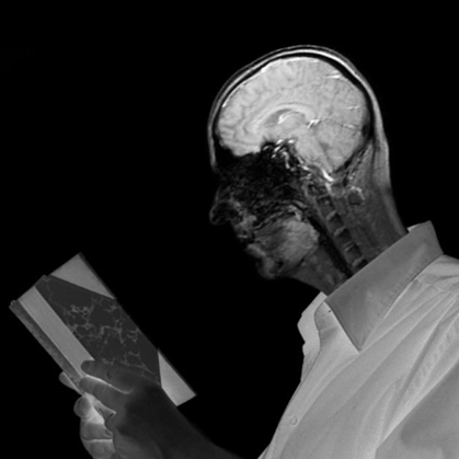 Figure 2 : Autoportrait Jean-Philippe Toussaint, Autoportrait en lecteur, image 15 x 15 cm, obtenue par résonance magnétique, retouchée et tirée sur papier, Fine Art Etch 300 grammes, 2012.
