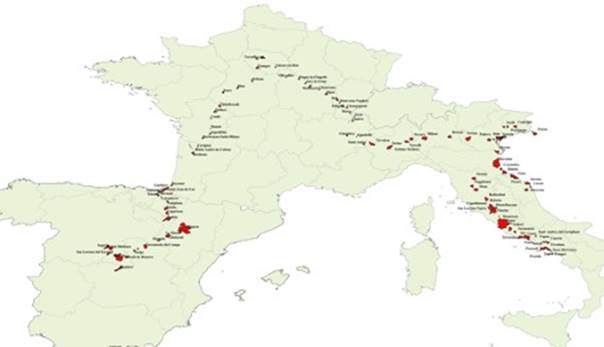 fig. 1 : Itinéraire emprunté par José Felipe Flores (selon les informations figurant dans son journal).