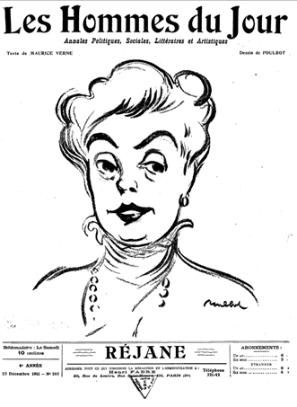 [1] Félicien CHAMPSAUR, « Deux masques », L’Événement, 16 janvier 1890 : « Des yeux et des nerfs, c’est Réjane. La modernité de cette actrice – Sa Modernité Réjane – est adorable. […] Mais les viveurs de cette fin de siècle sont plus épris d’artificiel. Des nerfs et des yeux, pour une femme, c’est assez ; là est tout ce qu’il faut pour vous affoler, la vie. Réjane est, on peut le dire, une enfant de la balle ».