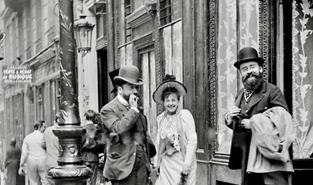 Fig. 5 : Joseph Primoli, Réjane et Louis Ganderax (à droite), rue Rougemont, près du Conservatoire, Paris, 25 ou 26 juillet 1889. Fondation Primoli, Rome (détail).