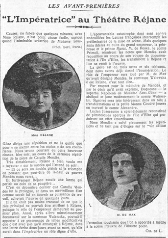 Fig. 16 : Portraits de Mme Réjane et M. de Max en médaillon, photographies, Comœdia, 2 avril 1909.