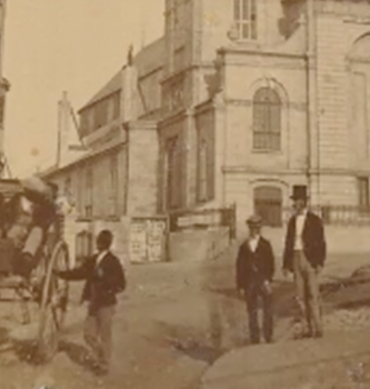 En vérité, les commentateurs du premier cinéma ont vu en lui une capacité à perpétuer l’image du mouvement. Chaque photogramme est donc un « avoir-été-là », mais auquel le mouvement, indice très puissant, donne cette très grande illusion de réalité. Pour autant, il ne faut pas oublier que la durée s’inscrit aussi dans la photographie, qui a un temps d’exposition. Dans cette vue stéréoscopique de 1870 par exemple, qui représente la cathédrale de Québec, on est à la frontière de la photographie instantanée, puisqu’avec la trace fantomatique laissée par un personnage qui a bougé pendant la pose, elle enregistre son déplacement.