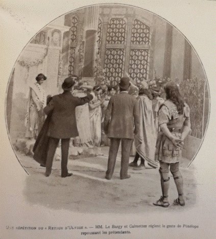 Fig. 1 : Photographie de tournage du Retour d’Ulysse avec Le Bargy et Calmette de dos, réglant la mise en scène. BnF - Rf64323