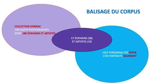 Fig. 2. Détail du corpus des écrivains et artistes à la fois photographiés par Dornac et filmés par Pathé.