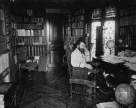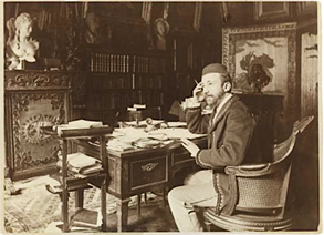 Il s’agit de ménager les conditions d’une reconnaissance dont l’opération doit se jouer à deux niveaux, le niveau de l’appartenance collective, et le niveau de la singularité. On va reconnaître un intellectuel, classer un « homme de lettres » ou un « artiste », et comme dans le jeu des 7 familles, dans la famille « écrivains », il faut identifier Zola, ou Loti, ou Claudel (Fig. 11), qu’on va de surcroît identifier « chez eux ». Ce chez eux est une construction d’espace impliquant un dispositif sémiologique transparent où tout converge pour signifier cette appartenance intellectuelle ou professionnelle, ainsi que la dignité culturelle associée, même si quelques cas sont un peu plus complexes : comment, par exemple, mettre en scène un historien de la littérature tel que Gustave Lanson ?