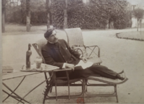 À première vue, bien des séquences cinématographiques semblent cependant les développements animés, et en cela inscrits dans l’épaisseur du temps, des formules scénographiques de Dornac. Qu’on en juge en comparant un certain nombre de portraits photographiques et d’images arrêtées, d’un portrait de Bonnat (Fig. 22 a et b)19 à un autre d’Anatole France, en passant par le portrait extérieur d’un Bergson lisant dans son jardin, en 1908 (Fig. 23a), qu’on peut comparer à un autre encore (Fig. 23b)20, tiré des images d’actualité, et officiellement daté de 1917. Pourtant de subtiles différences distinguent le second Bergson filmé du Bergson de Dornac : le corps n’est plus tenu, droit et raide, par le dossier d’une chaise métallique, mais il se relâche en prenant appui sur le dossier penché d’un fauteuil bas en osier ; l’heure est à la détente annoncée par le livre dont on coupe les pages, la tête nue ayant abandonné le couvre-chef. Ce Bergson filmé se rapproche davantage de Paul Adam (Fig. 24), l’auteur du roman naturaliste Chair molle21, tel qu’il est photographié par Dornac, en 1899, lisant, alangui, dans un fauteuil en osier.