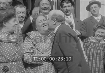 Fig. 34. Le chanteur Dranem embrassant une admiratrice. Archives Gaumont Pathé. Image arrêtée.