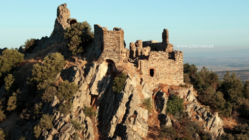 Ainsi, le château est un lieu, un espace qui est déplacé d’une réalité concrète à une autre imaginaire, d’un passé lointain à un présent qui désire « habiter » les ruines observées, leur redonner vie et recréer le lien : le lieu fait en effet le lien. Les ruines signalent, comme nous l’avons vu dans la légende de Bécquer, un temps et des actions passés que soit la recherche soit la créativité (l’imagination) de l’auteur, se chargent de reconstruire. C’est aussi le cas dans la légende populaire et historique (datée du XIIe siècle) d’Estrémadure « Los panes del castillo » sur le siège du château de Mirabel, dont les ruines sont encore visibles sur les hauteurs de la Sierra de Canchos (Fig. 4) dans le parc naturel national de Monfragüe, espace protégé de la province de Cáceres.