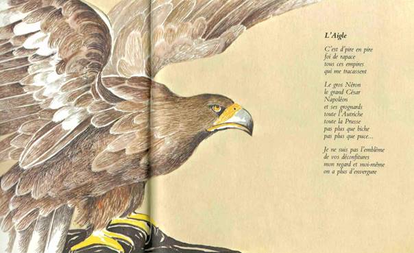 Dans le cas de l’aigle13, l’auteur, recourant à la figure de style nommée « prosopopée », qui consiste ici à faire parler cet oiseau, joue sur la symbolique de l’aigle, altier, royal : le comique vient de ce que celui-ci se désolidarise de l’imaginaire guerrier et impérial auquel il est traditionnellement associé, en renvoyant les grands conquérants à leur déconfiture. Même si cela reste très ponctuel, on perçoit néanmoins ici la remise en cause de certaines valeurs et de certains aspects de la grande histoire.