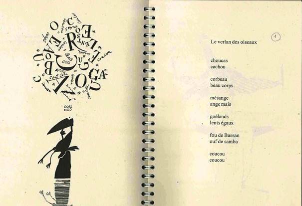 [41] P. 35. On peut aussi donner l'exemple des poèmes p. 42 (sur la caille) et 48 (« Le zoizeau / Zizotte et zozutte »…).