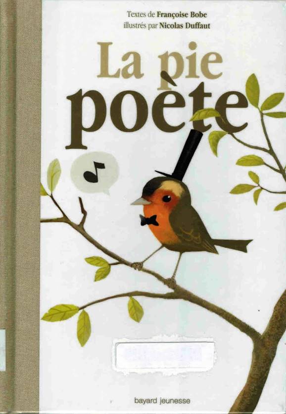 Illustration 25. Françoise Bobe, ill. Nicolas Duffaut, La pie-poète, Paris, Bayard jeunesse, 2009 : 1re de couverture