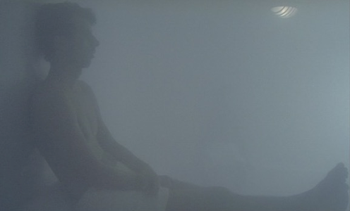 Ce registre, ainsi, n’intervient pas seulement dans le film à travers le visage en point d’interrogation de l’acteur et son corps mis en scène comme assez maladroit, dégingandé, un peu encombrant. Il se fait présent, plus encore, par la façon dont est traité le rapport de ce dernier à l’espace, en particulier dans les différents plans qui, souvent fixes, le confrontent aux limites du cadre comme s’était plu à le faire le cinéma muet burlesque – et l’on pense ici notamment aux fameuses images du Cameraman (1928) montrant Buster Keaton occupé à se débattre dans l’exiguïté d’une cabine de piscine. On peut le relever par exemple dans ce plan d’Andalucia, d’autant plus déconcertant qu’il est inséré immédiatement après la séquence de nuit dans le square avec laquelle il contraste fortement, où l’on voit le corps du personnage, plongé dans la lumière blanchâtre et opaque d’un bain de vapeur, étrangement calé contre les bords du cadre (ill. 3).