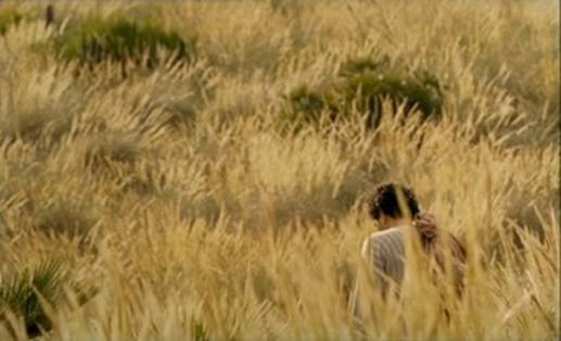 Une polarité fort similaire est à l’œuvre dans Andalucia. Si ce n’est que la « forme ouverte » n’est pas, ici, reliée à un « chez soi » [homeplace] perdu et retrouvé, reconduite au « bled » pour reprendre une expression récurrente dans les dialogues du film, mais associée à une contrée tout à fait nouvelle pour le personnage et où pourtant il trouve un point d’ancrage, comme y insistent les gros plans sur ses pas qui interviennent à deux reprises. Ce qui, bien sûr, modifie les perspectives et déplace quelque peu le propos. Il ne s’agit pas ici d’un mouvement de retour dans la visée d’un éventuel « repaysement » mais d’un pas de côté dépaysant. Ce dernier n’en est pas moins affaire de temporalité autant que de spatialité.