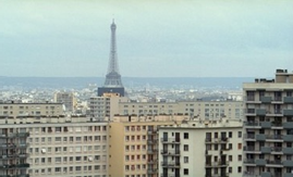 Il est significatif de confronter de telles images avec le montage auquel procède le film dans l’une de ses premières séquences à partir d’une vue large de Paris, organisée autour d’un repère monumental aussi emblématique que la Tour Eiffel (ill. 11 et 12). Cette vue intervient de façon surprenante dans la mesure où, lumineuse, elle succède directement à un gros plan nocturne sur le personnage et qu’elle constitue, plus de vingt-cinq minutes après le début du film, la première image présentant un espace visuel aussi ouvert. Elle est aussitôt suivie d’un raccord regard qui montre le visage de Yacine penché à une fenêtre du logement de ses parents, dans un plan non dépourvu de portée politique : le champ se voit étroitement et symétriquement resserré à la verticale par deux tours qui se font face et la figure humaine plaquée sur le bord gauche du cadre a peine à s’y inscrire ; le personnage est coincé dans l’exiguïté imposée par les lignes géométriques de l’architecture, exclu de l’espace qui s’offrait à son regard – et à celui du spectateur – dans le plan précédent mais lui est bien vite soustrait.